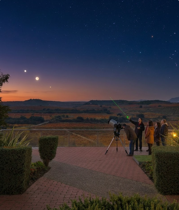 El evento astronómico con telescopio y cata de vino en la Rioja, en Finca Valpiedra: Una Noche Bajo las Estrellas: Viaje por el Universo, incluye: